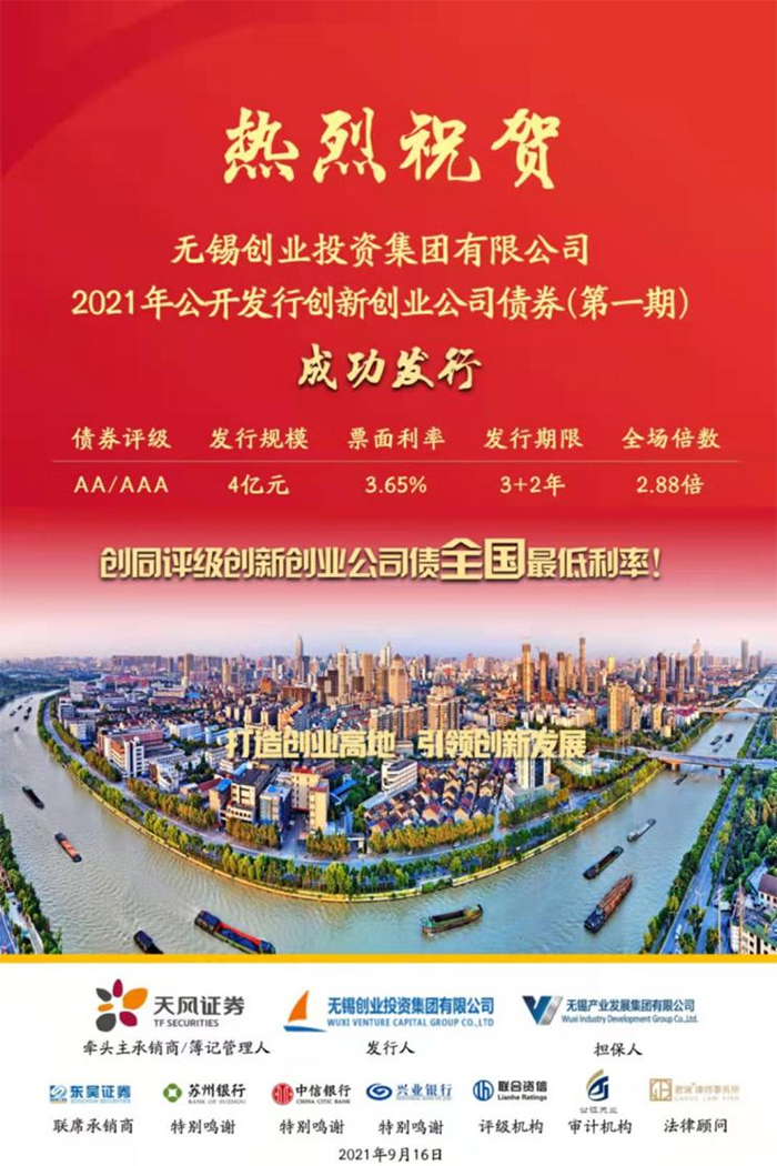 利率全國(guó)最低!無(wú)錫創(chuàng)投集團(tuán)成功發(fā)行創(chuàng)新創(chuàng)業(yè)公司債券 |