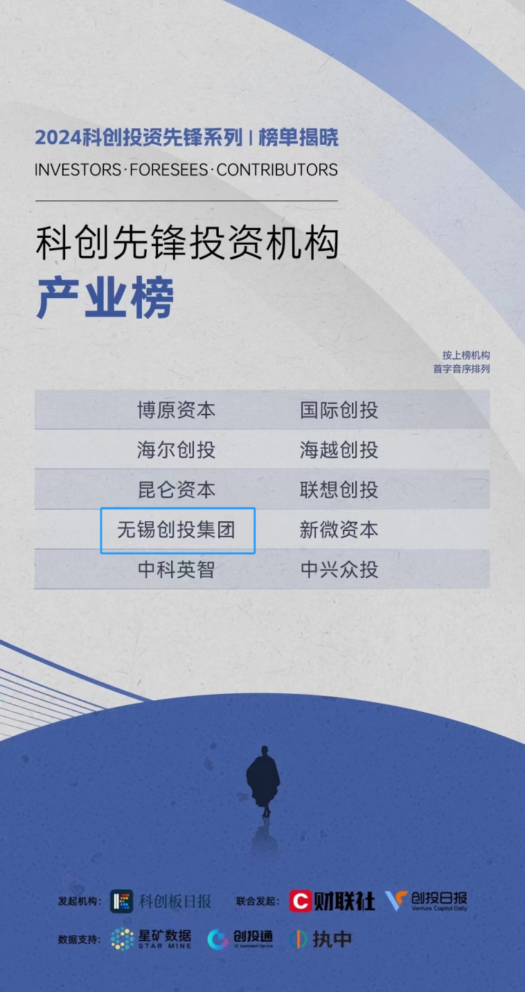 8月21日,“2024科創(chuàng)投資先鋒系列榜單”重磅揭曉,創(chuàng)投集團榮獲「2024科創(chuàng)先鋒投資機構(gòu)·產(chǎn)業(yè)榜」TOP10。 科創(chuàng)投資先鋒系列榜單是由《科創(chuàng)板日報》及財聯(lián)社聯(lián)合發(fā)起,星礦數(shù)據(jù)和執(zhí)中數(shù)據(jù)作為數(shù)據(jù)支持單位,自2024年4月24日發(fā)起以來,歷時4個月,最終評選產(chǎn)生7大榜單,共45位先鋒投資人,44家優(yōu)質(zhì)投資機構(gòu)。 創(chuàng)投集團獲評:2024科創(chuàng)先鋒投資機構(gòu)·產(chǎn)業(yè)榜Top10 當下,產(chǎn)業(yè)投資作為創(chuàng)投行業(yè)的中堅力量,對于推動行業(yè)創(chuàng)新、促進產(chǎn)業(yè)升級具有不可替代的作用。它不僅為創(chuàng)業(yè)企業(yè)提供了資金支持,還帶來了行業(yè)經(jīng)驗、市場渠道和技術(shù)支持等寶貴資源。投資中,產(chǎn)業(yè)資本通過行業(yè)專業(yè)性、資源整合能力以及長期視角,投出“生命力頑強”的企業(yè)。這些投資不僅可以加速創(chuàng)新、促進產(chǎn)業(yè)升級,也為精準投資、提高創(chuàng)業(yè)成功率提供了新范式。 作為產(chǎn)業(yè)集團旗下的創(chuàng)業(yè)投資和股權(quán)投資平臺,創(chuàng)投集團將繼續(xù)圍繞無錫“465”現(xiàn)代化產(chǎn)業(yè)集群建設(shè),聚焦產(chǎn)業(yè)集團“1+4+X”產(chǎn)業(yè)布局,堅定產(chǎn)業(yè)投資方向,夯實產(chǎn)業(yè)投資能力,充分發(fā)揮產(chǎn)業(yè)集團的產(chǎn)業(yè)資源優(yōu)勢,做好項目的投資、招引和賦能,持續(xù)為無錫新質(zhì)生產(chǎn)力和實體經(jīng)濟高質(zhì)量發(fā)展注入新活力、增添新動能。 無錫創(chuàng)業(yè)投資集團有限公司的(簡稱“創(chuàng)投集團”)成立于2000年,始終圍繞無錫地方產(chǎn)業(yè)發(fā)展大局,依托產(chǎn)業(yè)集團產(chǎn)業(yè)布局與資源,立足產(chǎn)業(yè)、聚焦產(chǎn)業(yè)、服務(wù)產(chǎn)業(yè),堅持長期主義,深化產(chǎn)融結(jié)合,深度聚焦半導體、高端制造、數(shù)字經(jīng)濟及新能源行業(yè),與一批產(chǎn)業(yè)鏈主形成了良好的合作關(guān)系,投資布局了一大批產(chǎn)業(yè)內(nèi)企業(yè)。 成立至今,創(chuàng)投集團累計參與發(fā)起設(shè)立產(chǎn)業(yè)基金45支,規(guī)模合計近150億元;直接、間接投資項目500余個,項目投資金額近百億元;孵化培育瞪羚、獨角獸企業(yè)60余家;45家被投企業(yè)實現(xiàn)IPO上市。 |